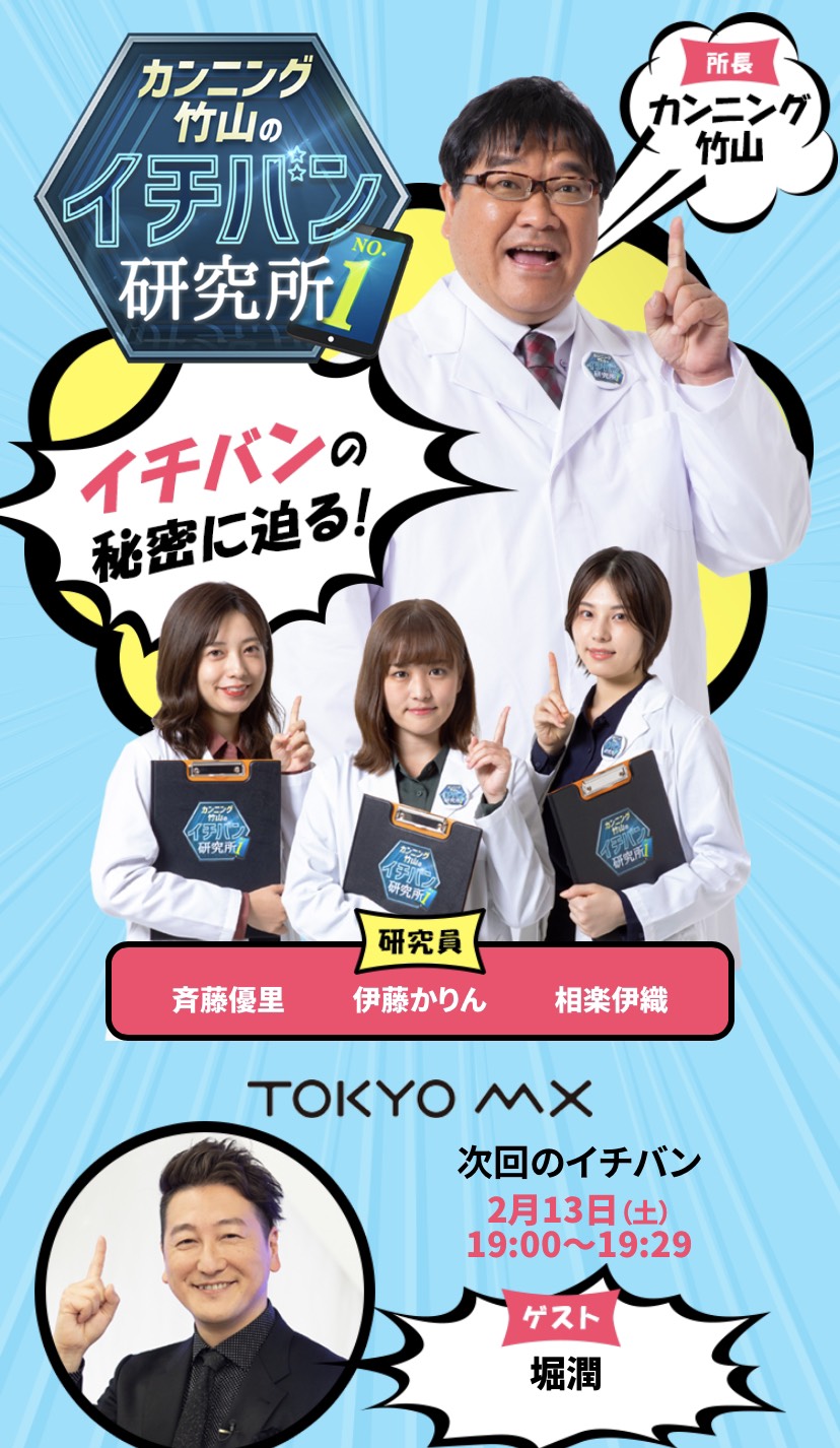 2月13日(土)、『カンニング竹山のイチバン研究所』という番組に