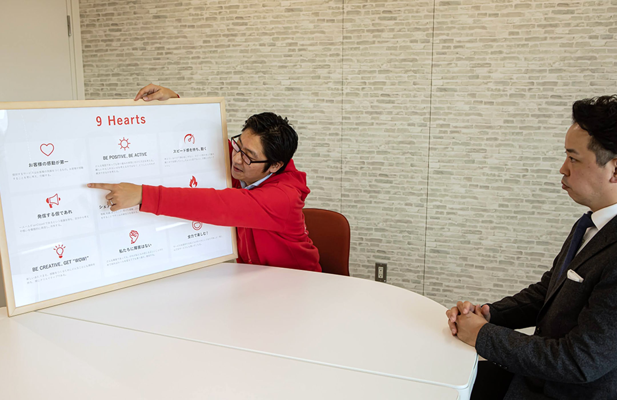 溝口:9 Heartsは御社の思いが詰まっているものなので深く理解しています。御社にフィットするしないも感覚的にわかりますし、ご紹介する人には必ず9 Heartsを伝えるようにしています。